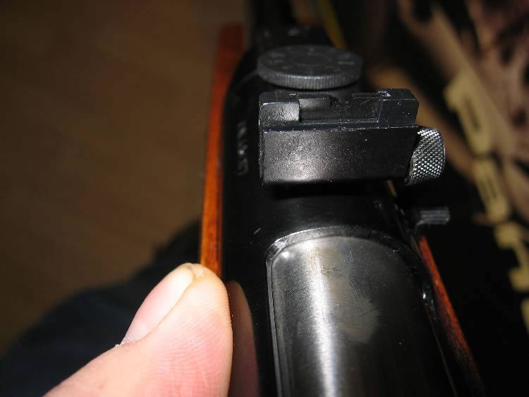 DIANA ![]() Die Kimme wurde mittlerweile bei Diana auch überarbeitet, Rechts sieht man den Hebel der das Zurückschnellen des Kolben verhintert da dieser eine Raststange im inneren betätigt (wie bei dem Diana 48) |